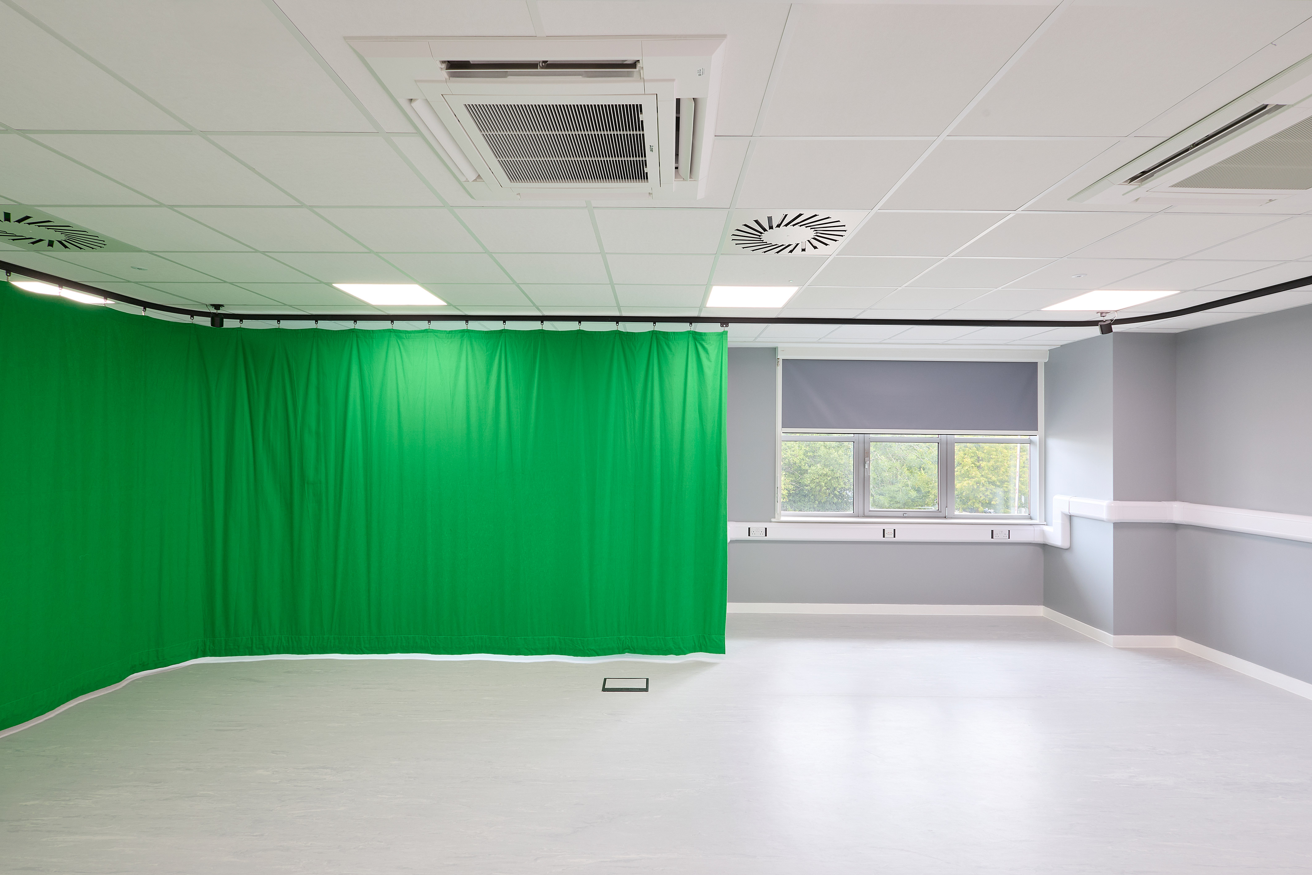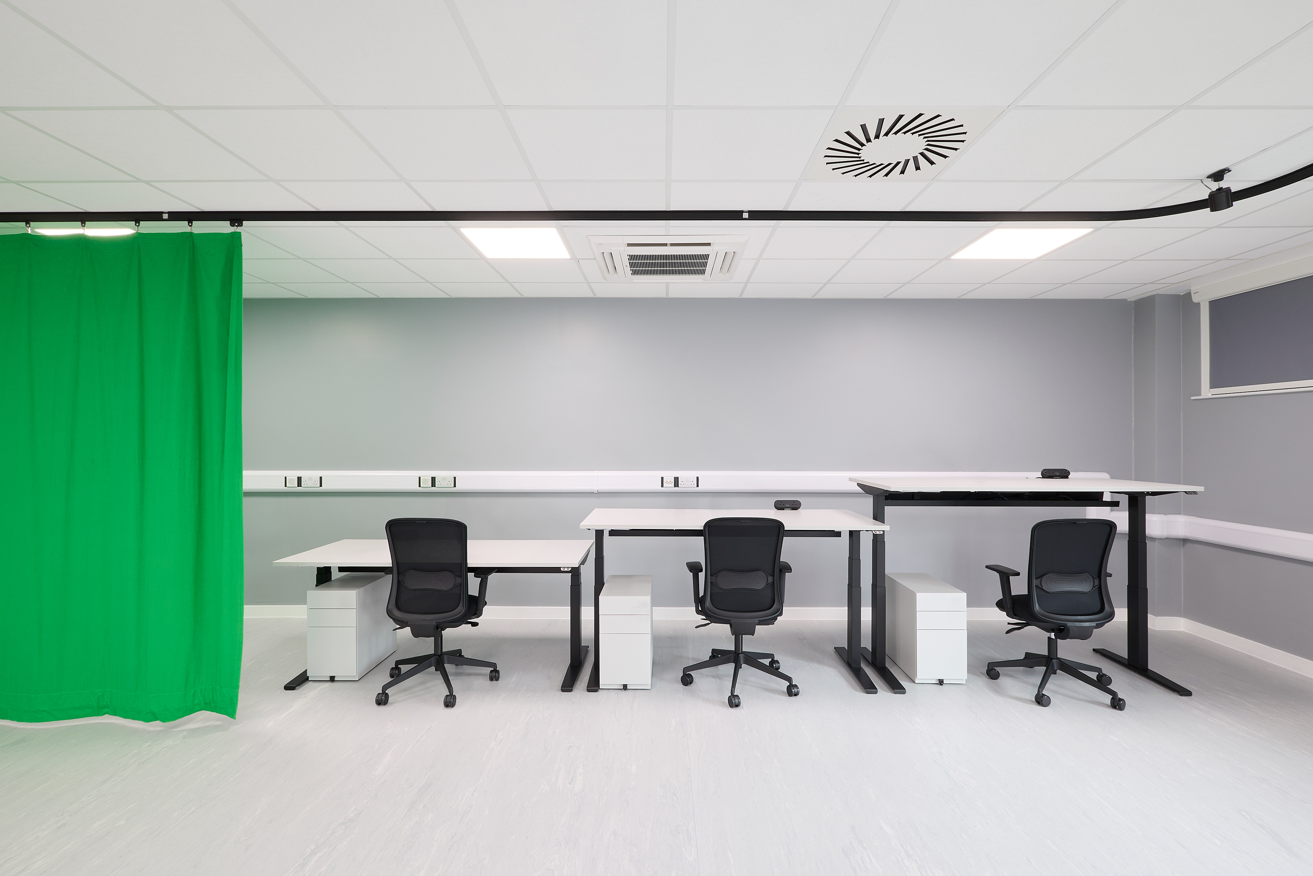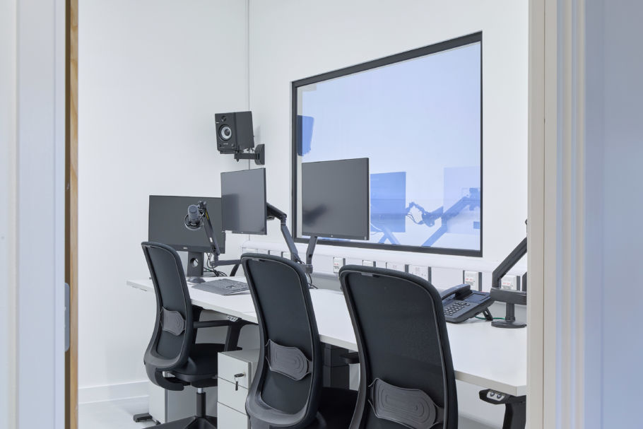 Energy efficiency is built into this workplace design with integrated air conditioning and heat recovery systems that reduce waste and optimise performance. Zoned heating and cooling support a variety of specialist spaces—from the XR hub and simulation labs to offices and seminar rooms. Architectural layouts were carefully coordinated to meet healthcare standards while maximising comfort, with smart control panels and system monitoring ensuring reliability, ease of maintenance, and long-term energy savings for the NHS.
