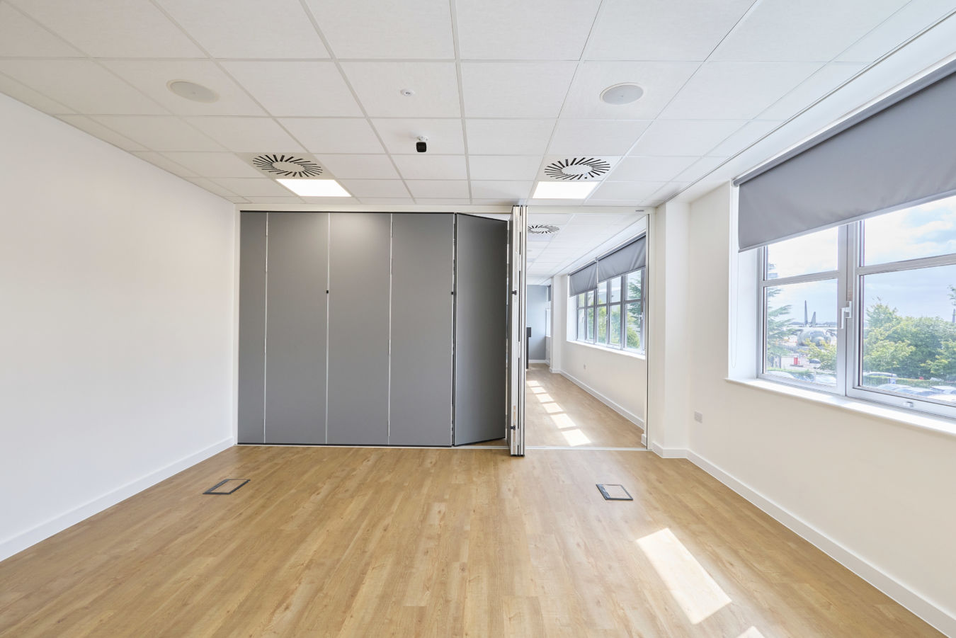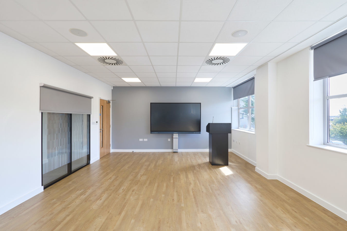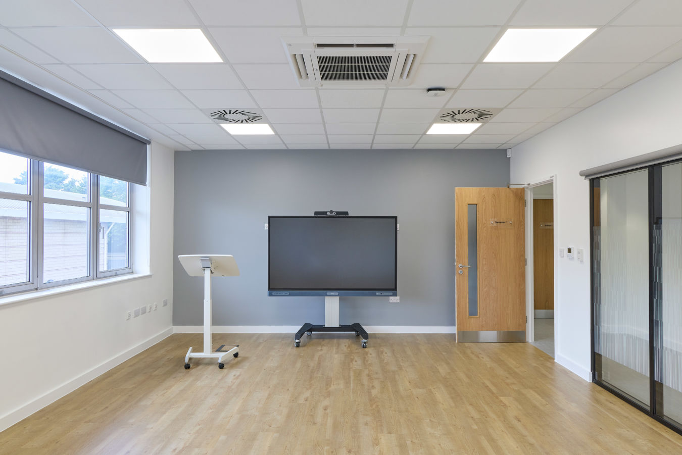 Energy efficiency is built into this workplace design with integrated air conditioning and heat recovery systems that reduce waste and optimise performance. Zoned heating and cooling support a variety of specialist spaces—from the XR hub and simulation labs to offices and seminar rooms. Architectural layouts were carefully coordinated to meet healthcare standards while maximising comfort, with smart control panels and system monitoring ensuring reliability, ease of maintenance, and long-term energy savings for the NHS.