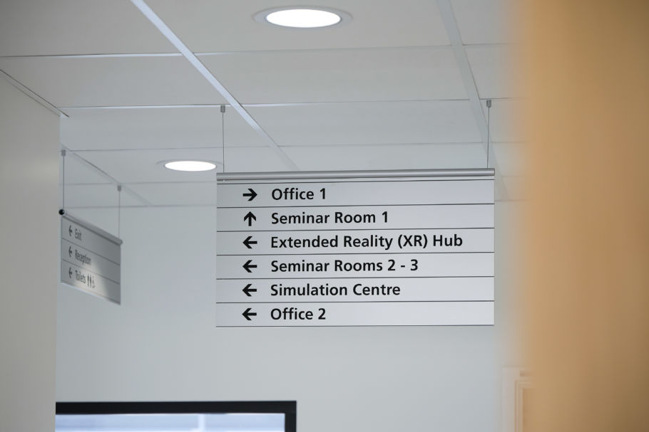 Integrating mixed reality and immersive technologies, to make the new centre a truly next generation training and research facility, required our design and site teams to work closely with the centre’s digital and medical experts and external AV consultant. Seminar room 1, with its divisible wall, and seminar room 2 can all display and stream the same content, feeding in from the simulation room, with microphones, cameras and speakers all embedded into the rooms for ease of use.