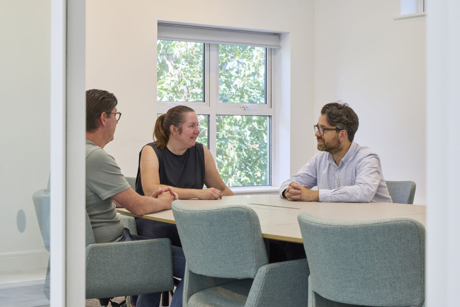Wrenbridge set out to refresh their Cambridge base with a warm, light‑filled workspace that better serves both their clients and staff. Working within the existing footprint, we planned and designed the main office floor to introduce a new manager’s office, a quiet/breakout, “chill” area, a collaboration room, and client‑facing space, while enhancing the tea point for everyday use. Roller blinds replaced older aluminium venetians to soften daylight and reduce glare, and storage was rationalised to free up floor area and sightlines.